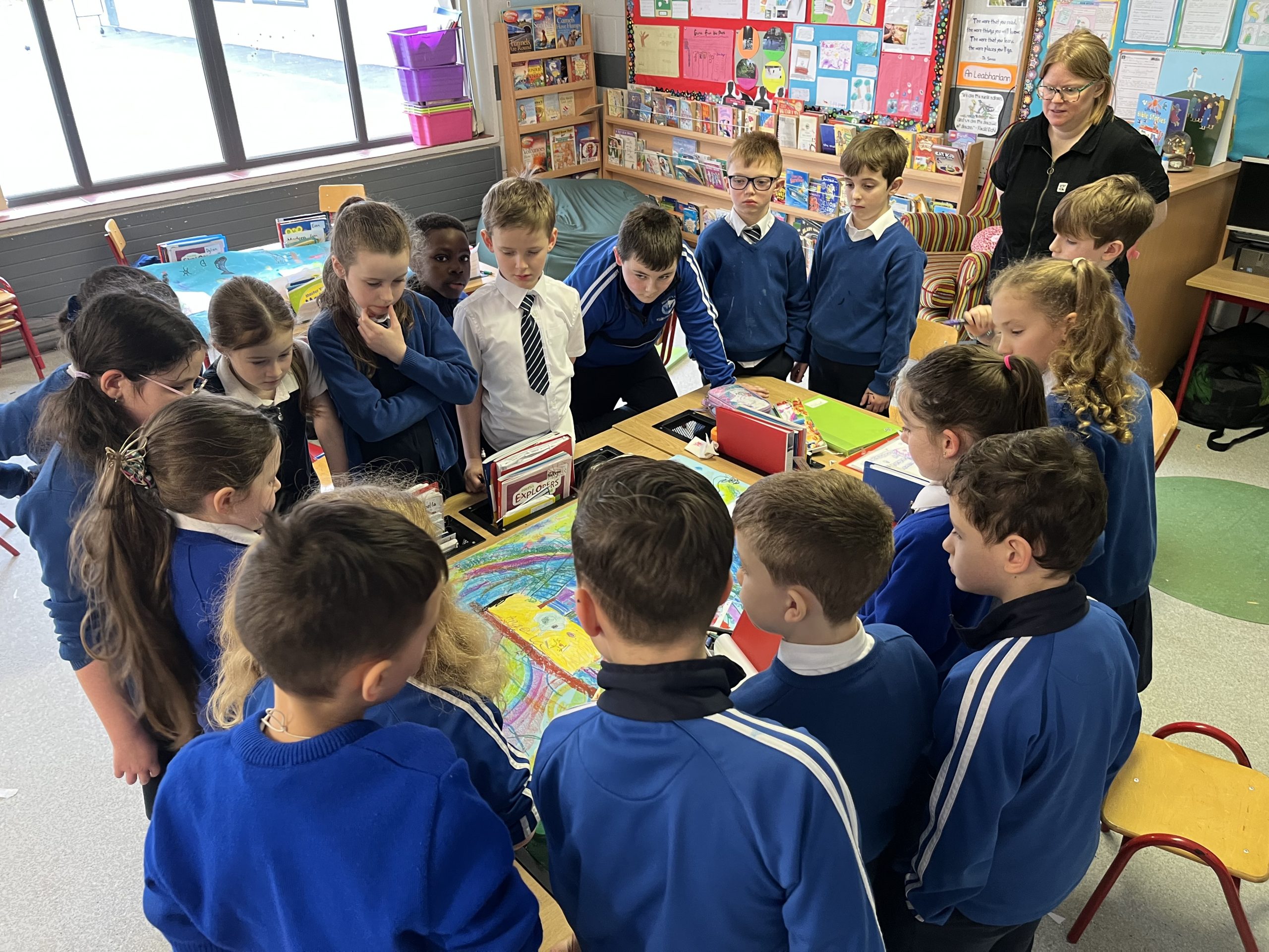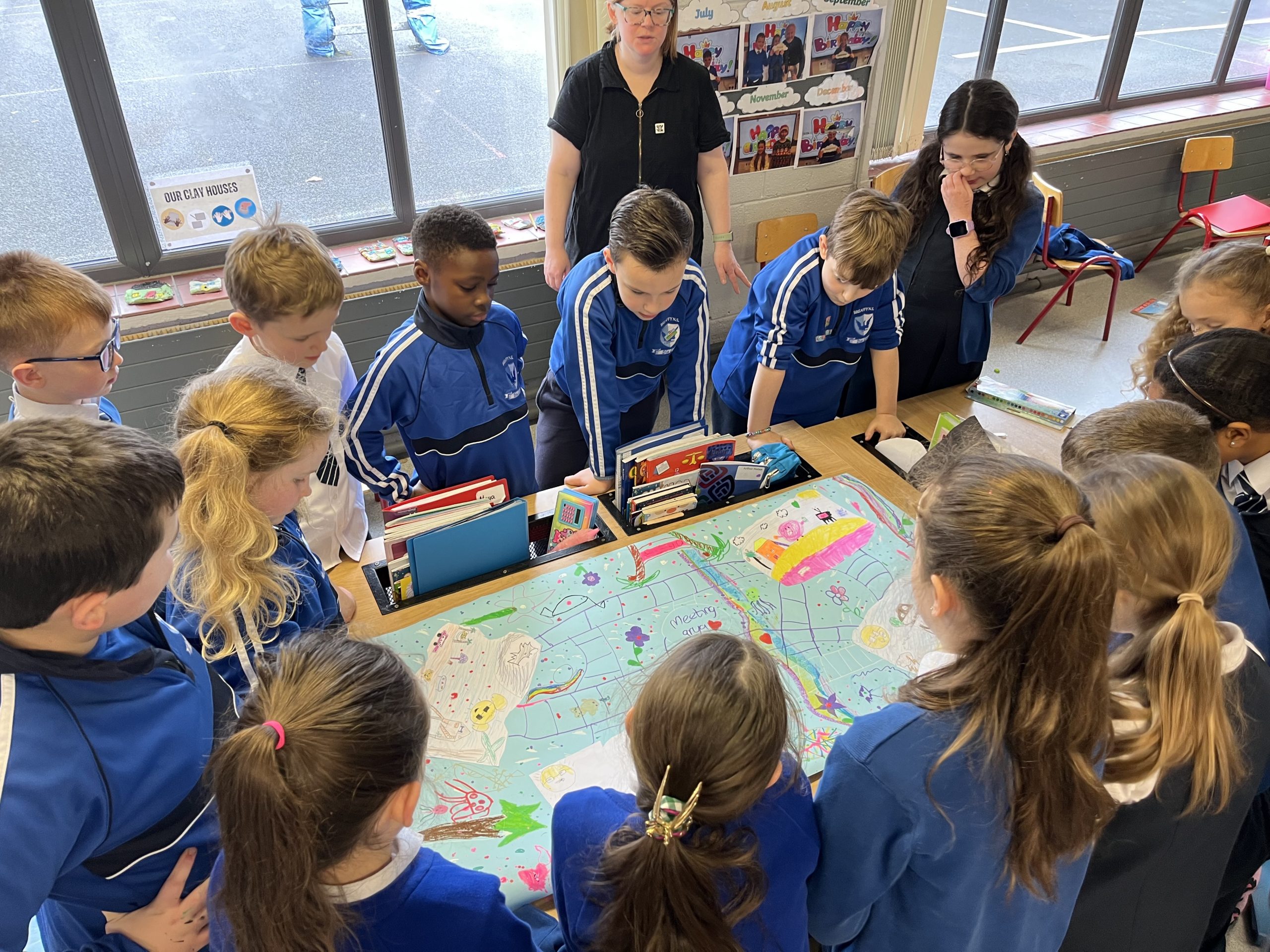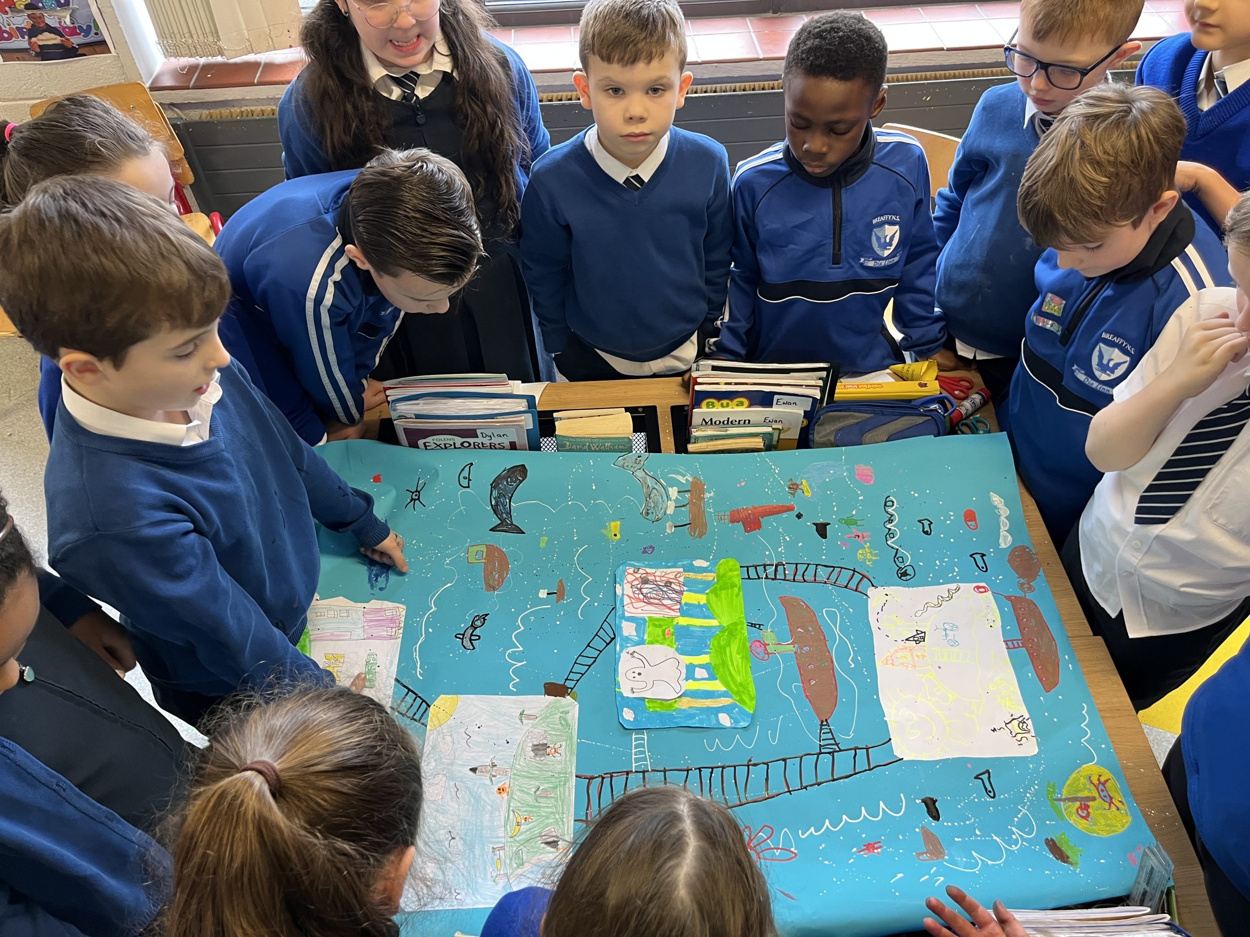 In Mr. Duignan’s class we have been busy working with Melanie from the Blast Creative project. Melanie is an illustrator and is working with the second classes on various art projects. This is the first completed project on creating islands.