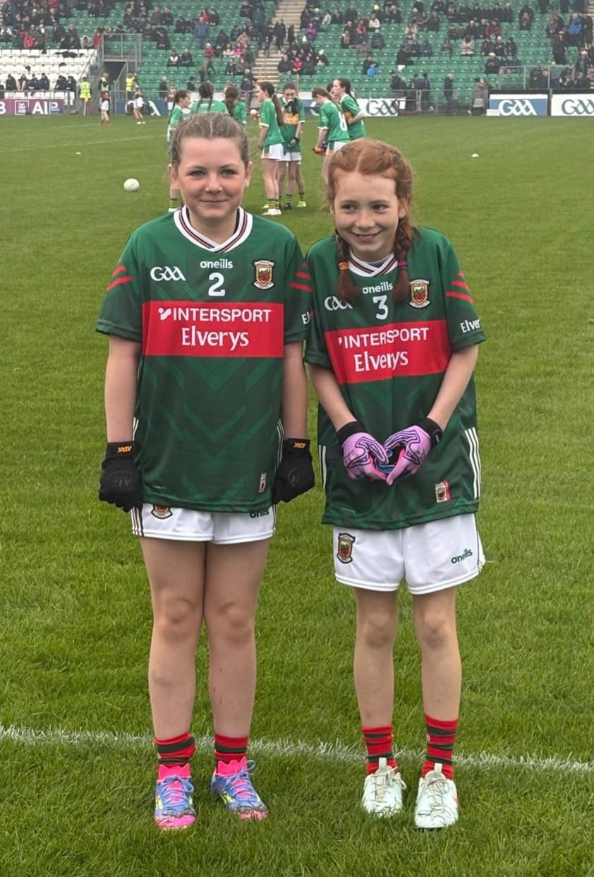 Congrats to Amy and Lucy on their brilliant performances for Mayo in the half-time exhibition game at the Mayo v Leitrim Senior Championship Match in Carrick-On-Shannon on Saturday. Bréachmhaigh Abú!