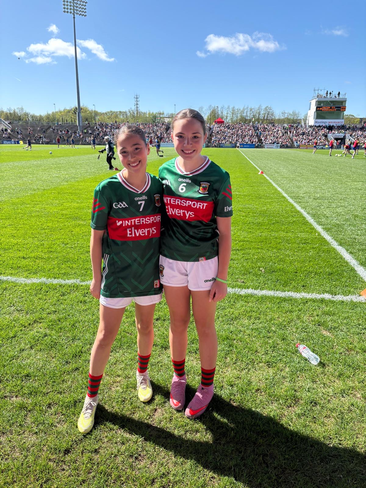 Our whole school community is very proud of Caríosa and Leowena who represented our school so well in the Cumann na mBunscol exhibition match played at half time on Sunday in Hastings Insurance McHale Park. 6/7 #Wonderfulmemories