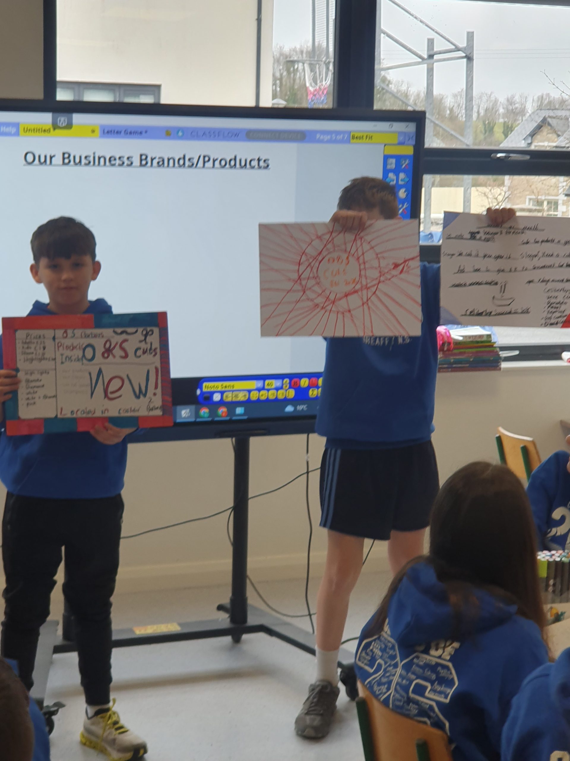 6th Class pupils in Mr.Shevlin’s class are also enjoying presenting their “Business Brands & Products”. We will be making T.V. advertisements for these next week! 🙂